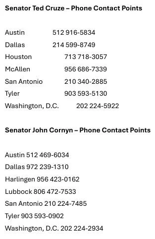 CONTACT YOUR CONGRESSMEN AND SENATORS